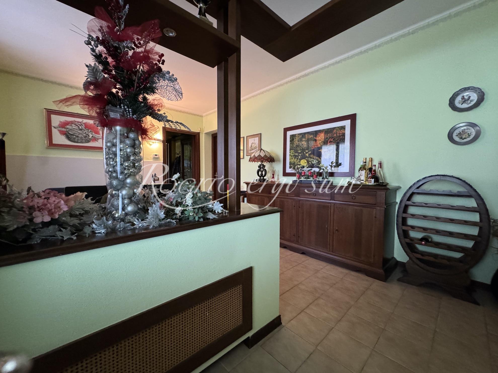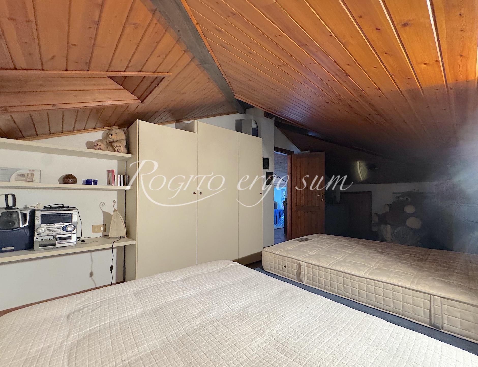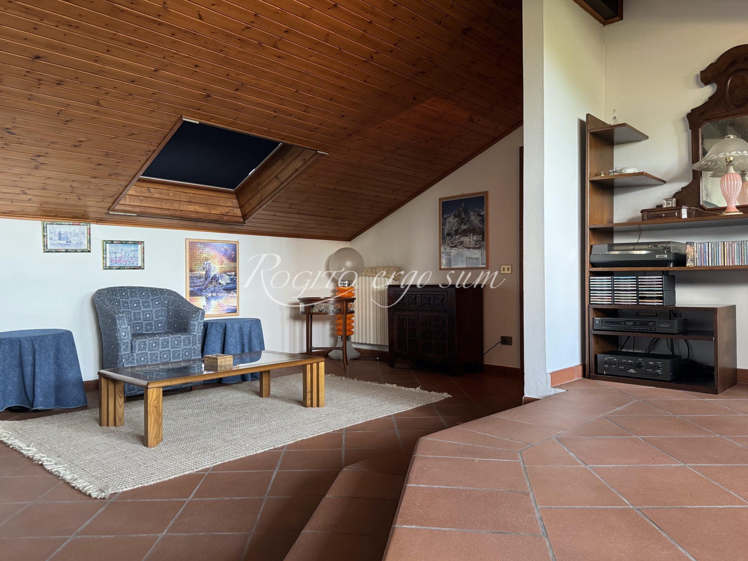 La casa dispone di un appartamento con ingresso dal piano terra, tutto su un unico livello, con accesso su grande soggiorno, luminoso e con affaccio su bellissima terrazza panoramica, cucina collegata al terrazzo stesso. Accesso separato alla zona notte con tre camere da letto, con aria condizionata e due bagni. Dalla sala, tramite scala a vista si accede al piano mansardato con due grandi locali multiuso e bagno. Nel piano terra con affaccio sulla piscina, grande portico chiuso, cucina, soggiorno e camera. Locale tecnico, cantina e box doppio. All’esterno trovano spazio due posti auto coperti. La qualità della costruzione, il contesto e la cura nella manutenzione, ne fanno un immobile di grande interesse.